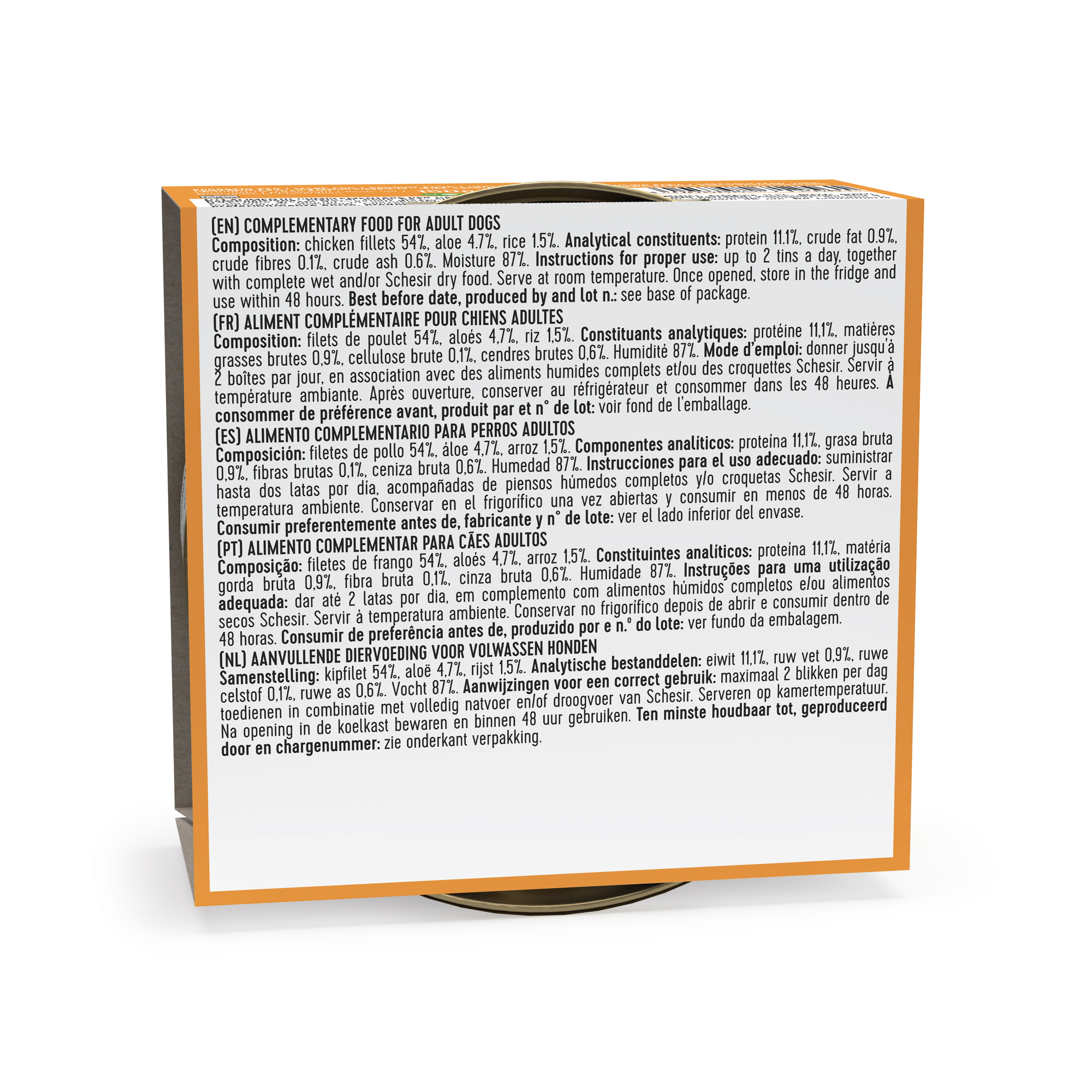 מעדן שזיר לכלבים עוף עם אלוורה בג'לי Schesir Dog Wet Food Chicken with Aloe in Jelly