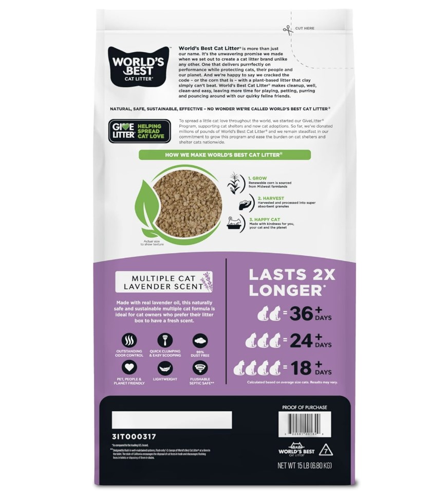 החול הטוב בעולם מתגבש למספר חתולים בניחוח לבנדר World's Best Cat Litter Multiple Cat Lavender Scent