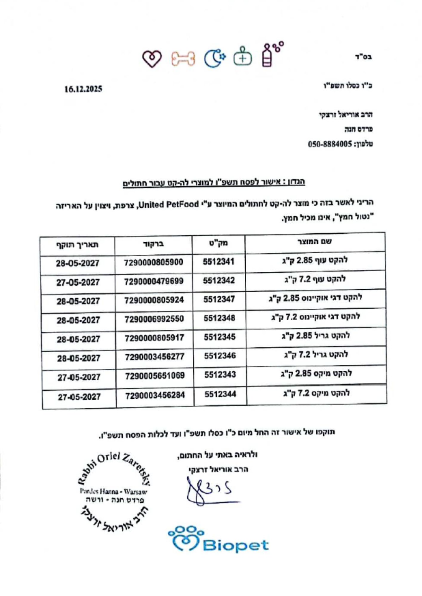 *באישור הרב אוריאל זרצקי*