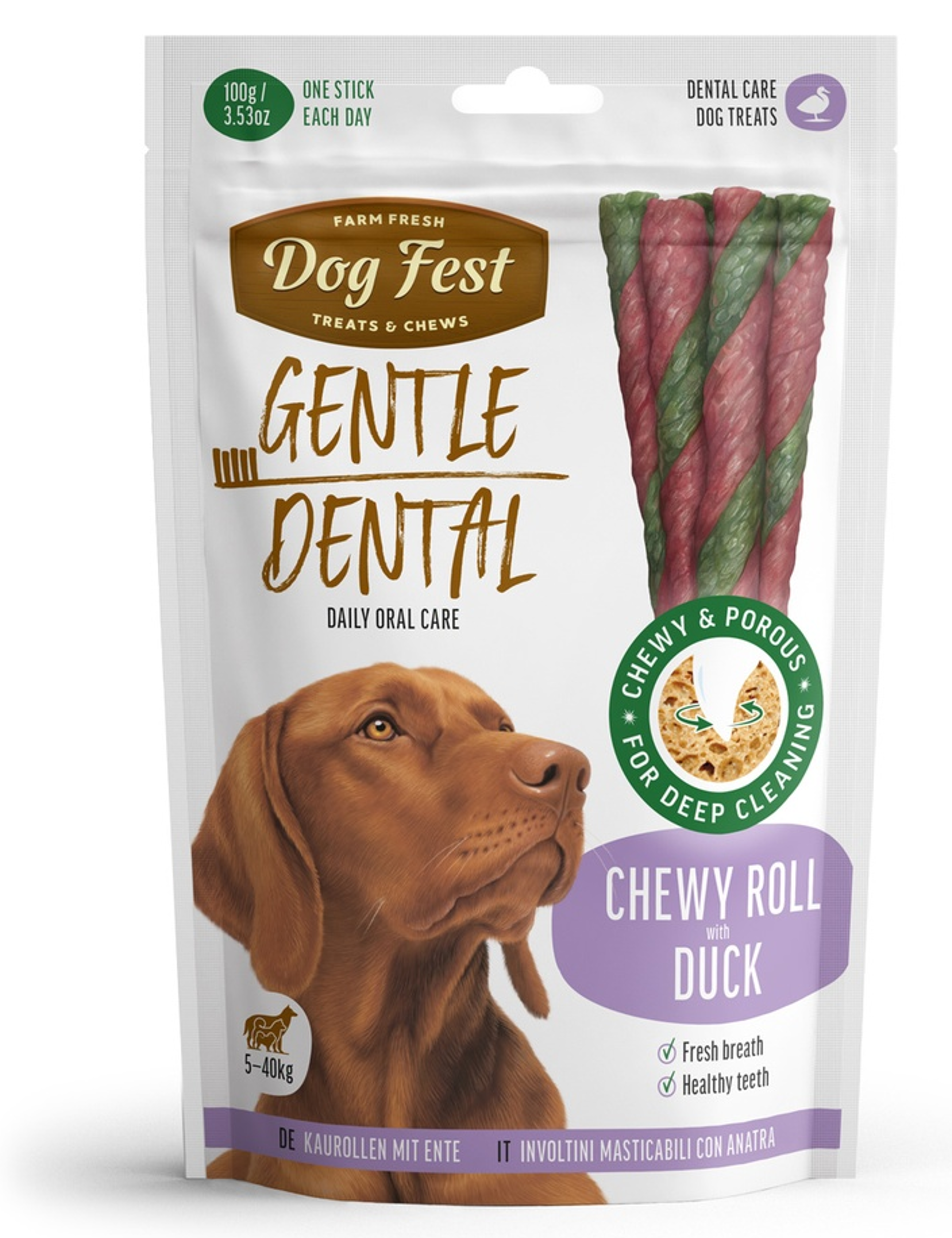 חטיף דנטלי גליל לעיסה בטעם ברווז DOG FEST Gentle Dental chewy roll with Duck