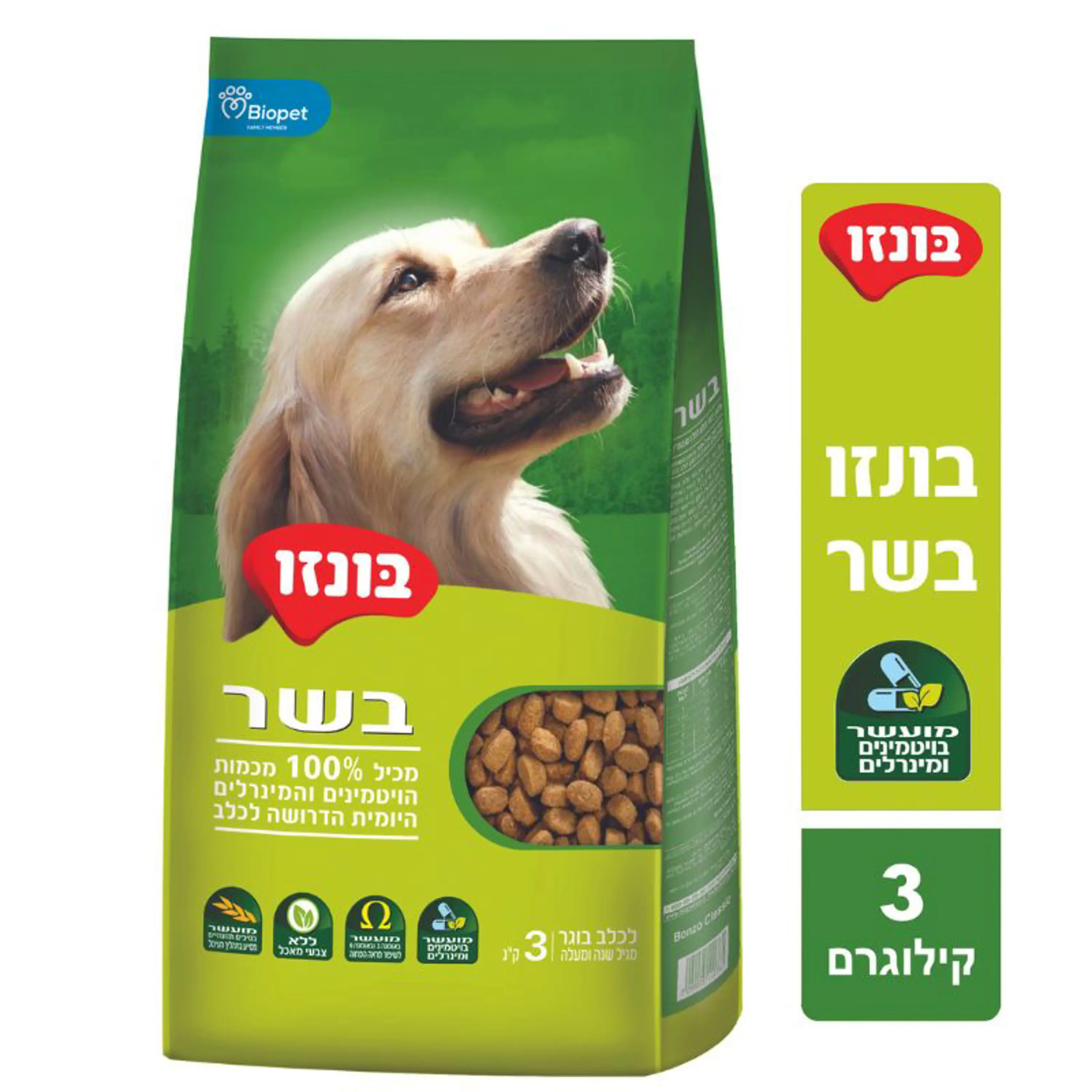 מזון יבש בונזו בשר 3קג ב-39ש"ח בלבד במקום 65ש"ח.
