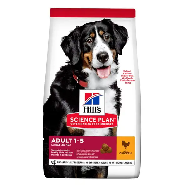 מזון לכלבים בוגרים מגזע גדול HILL'S SCIENCE PLAN עם עוף המיוצר בנוסחה שפותחה במיוחד כדי לספק את צורכי האנרגיה של כלבים מגזע גדול במיטב שנותיהם.