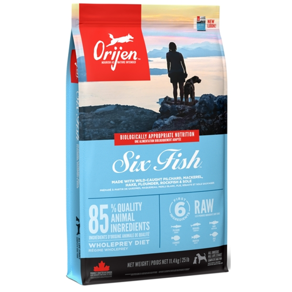 אוריג'ן 6 דגים מזון יבש מלא לכלבים מכל הגזעים והגילאים. אוריג'ן 6 דגים מיוצר במטבחינו מהדגים והפירות הטובים והטריים ביותר בקנדה, מבטיח שכלבכם יהיה מאושר, בריא וחזק.