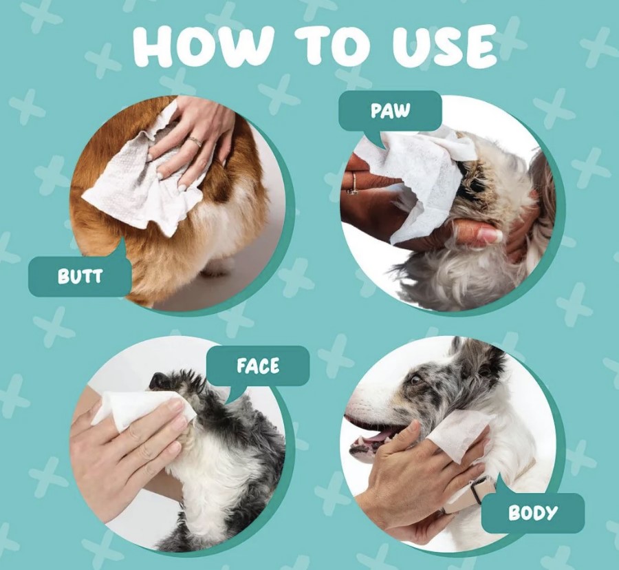 המגבונים ללא אלכוהול, ומתאימים לניקוי כפות רגליו של בעל החיים, כמו גם את פניו וגופו.
