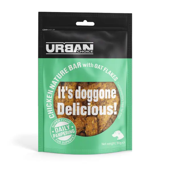 חטיף עוף עם שיבולת שועל, בעל טעימות עשירה ומפנקת עם מעל 60% בשר, החטיף מכיל סופרפוד התורמים לשמירה על אורח חיים בריא, ללא צבעי מאכל. עם החטיפים של URBAN CHOICE אתם יכולים להיות רגועים שאתם מעניקים לכלב שלכם את הקינוח הטעים והטוב ביותר!