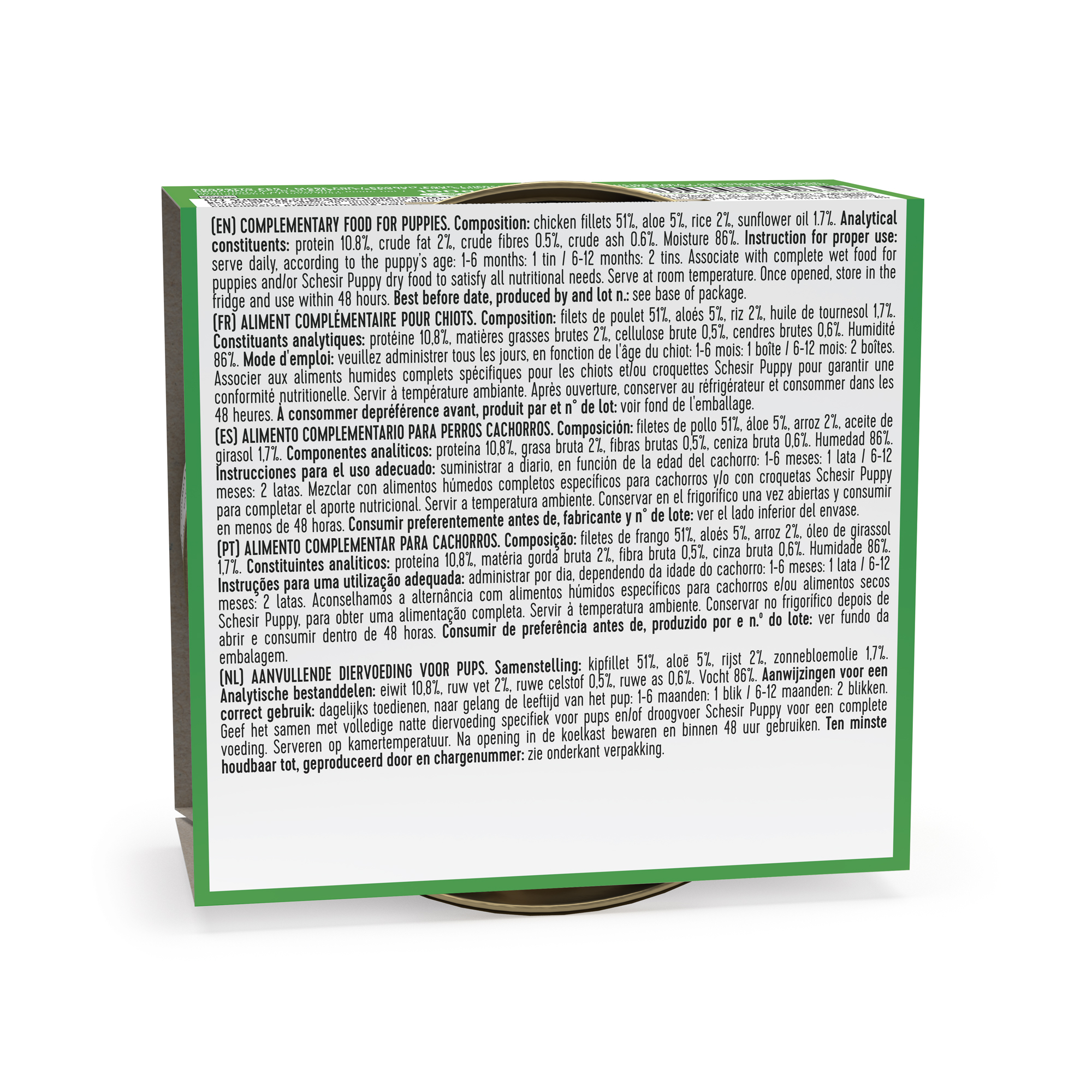 מעדן שזיר לגורי כלבים עוף עם אלוורה בג'לי Schesir Puppy Wet Food Chicken with Aloe in Jelly