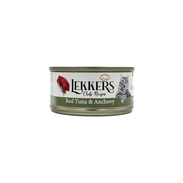 מגש 24 יחידות לקרס מעדן לחתול טונה אדומה ואנשובי LEKKERES chefs recipes Wet food for Cats