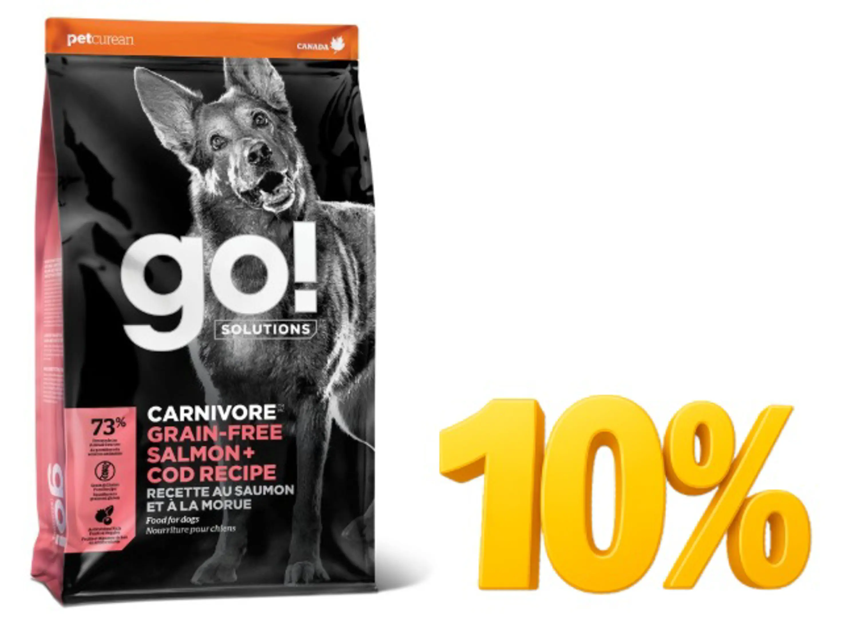 מבצע! גו! קרניבור סלמון ודג קוד לכלב ב-10% הנחה! SALE! GO! CARNIVORE GF salmon and cod Recipe for dogs