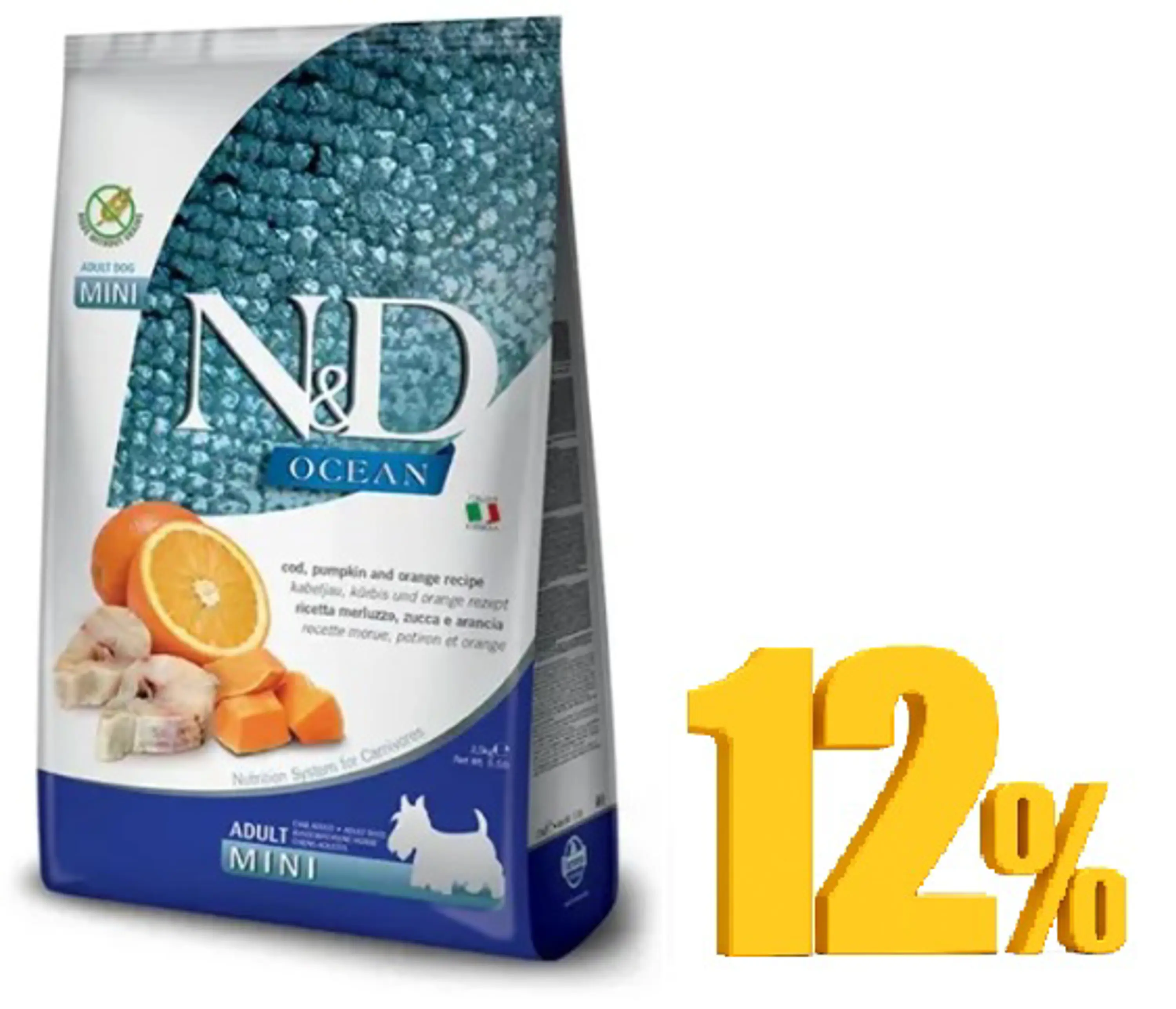 מבצע! ND OCEAN דג קוד דלעת ותפוז לכלב בוגר מיני ב-12% הנחה! FARMINA N&D COD and orange MINI ADULT