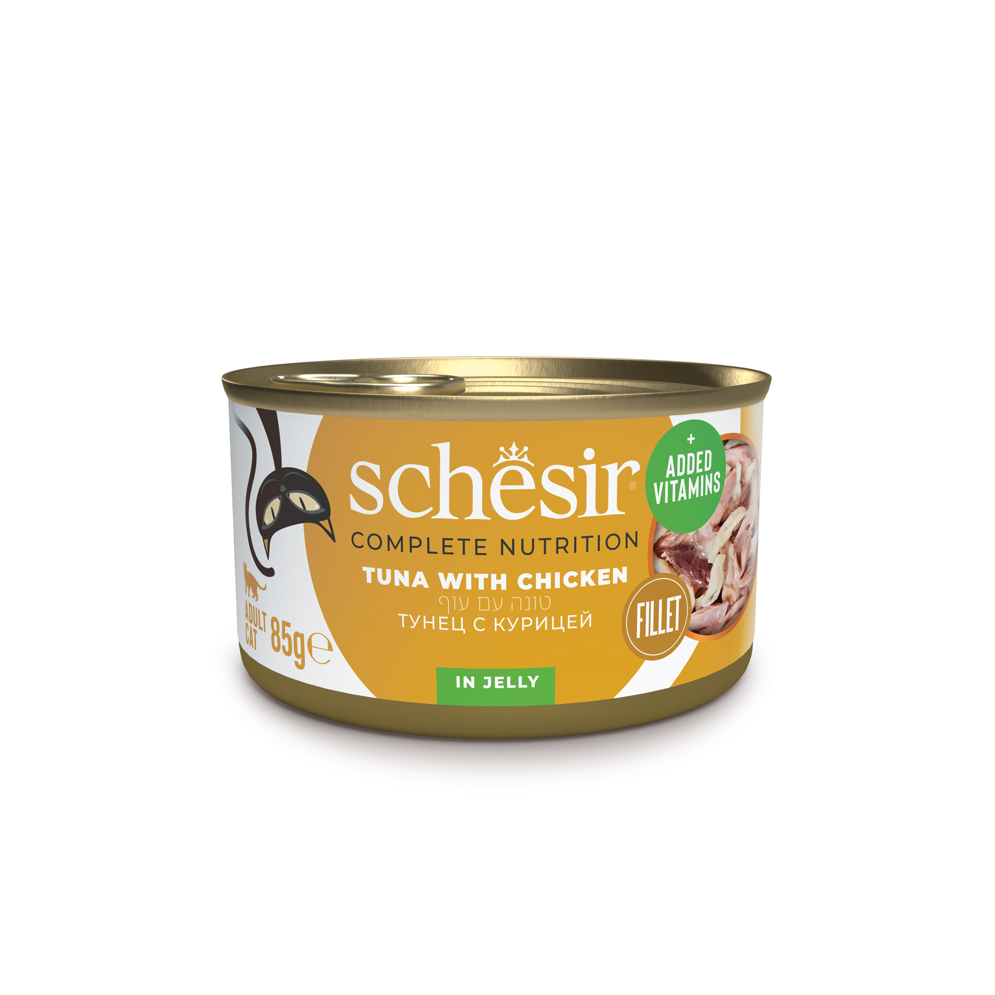 שזיר מעדן מלא לחתול נתחוני טונה עם עוף בג'לי Schesir Tuna with Chicken in Jelly wet cat food