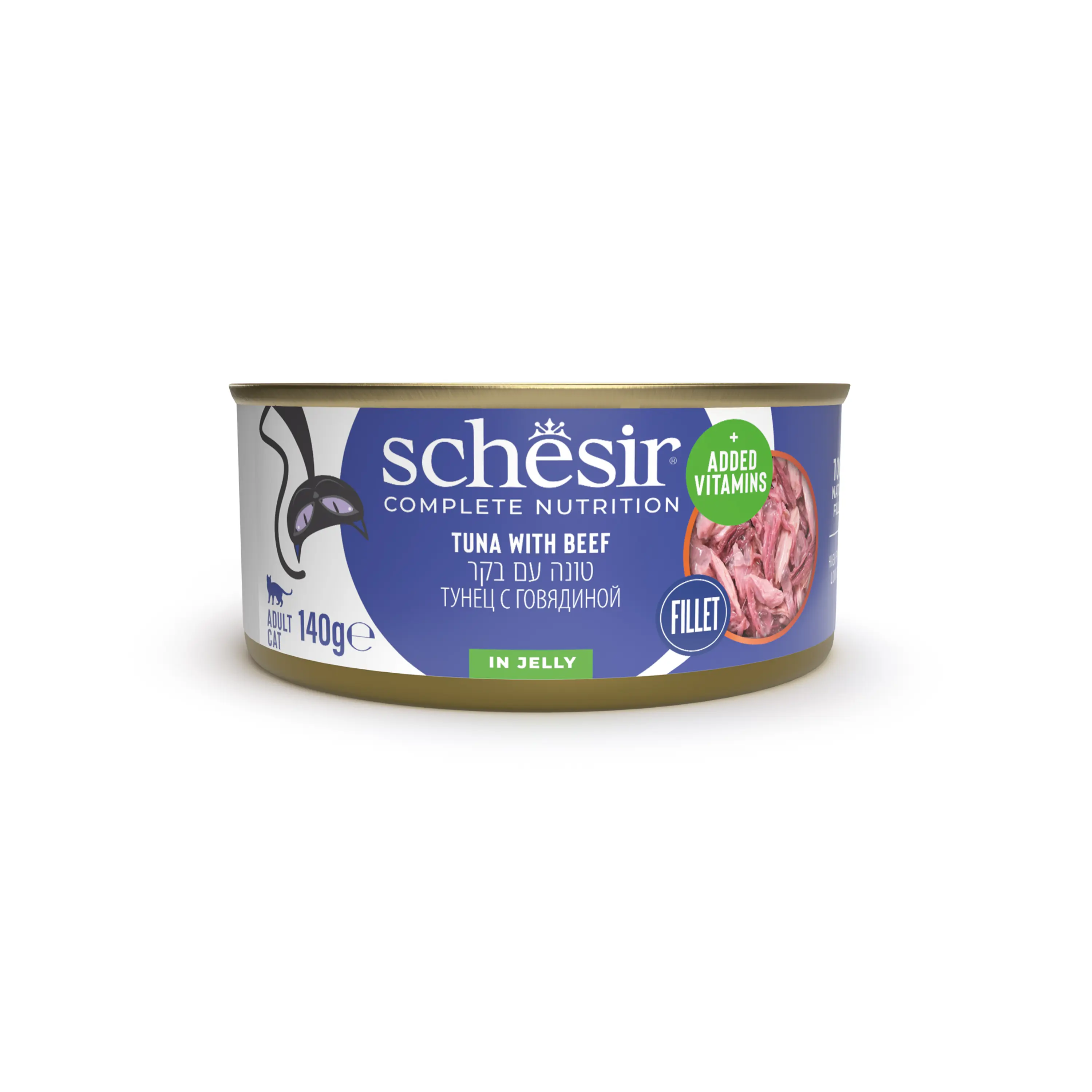 שזיר מעדן מלא לחתול נתחוני טונה עם בקר בג'לי Schesir Tuna with Beef in Jelly wet cat food