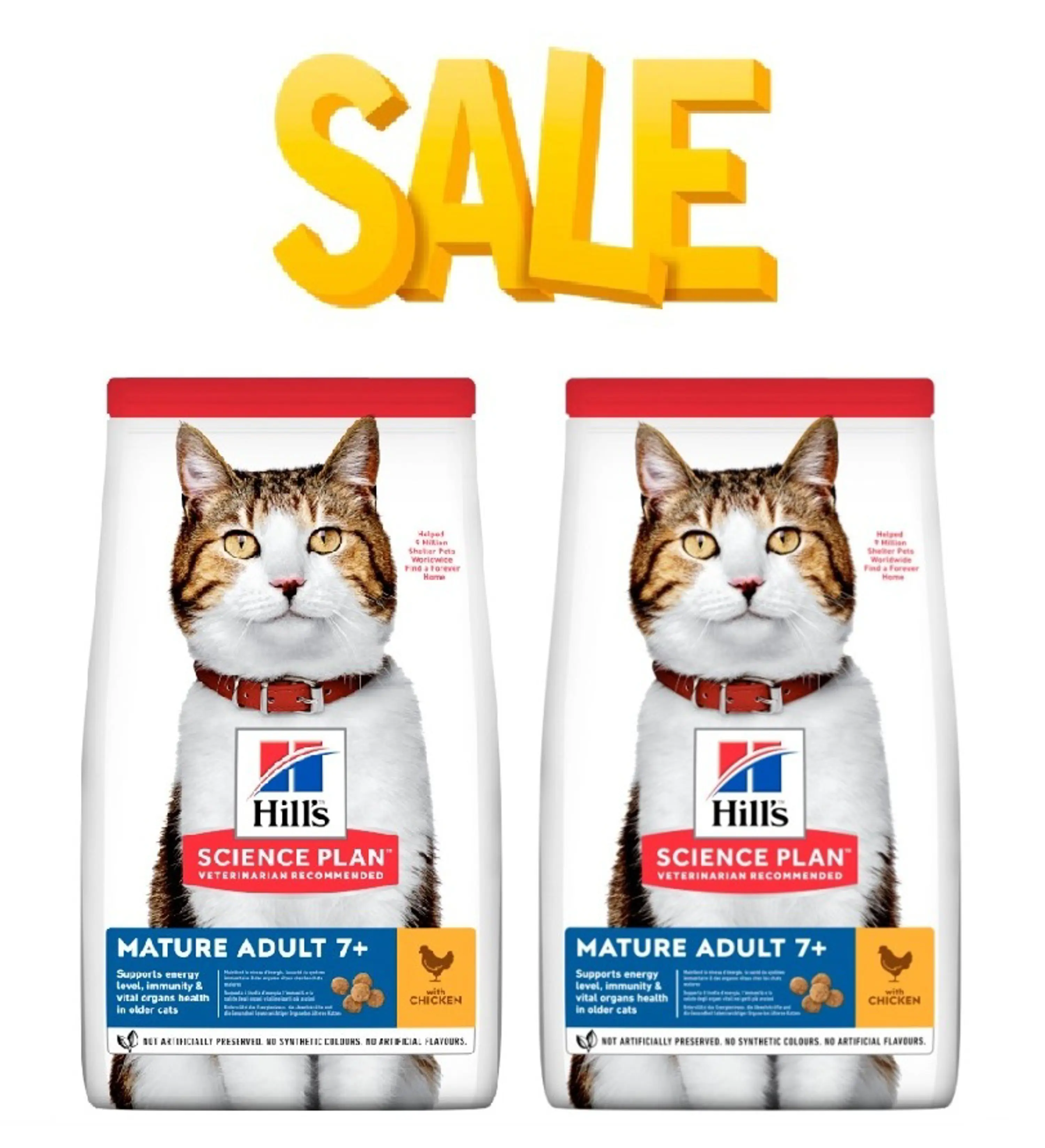 מבצע! 2 שקי הילס מזון לחתול מבוגר עוף ב-12% הנחה! SALE! HILLS Science Plan Mature Adult 7+