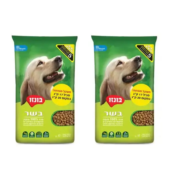 2 שקי מזון לכלבים בונזו בשר 17 קילו כל שק