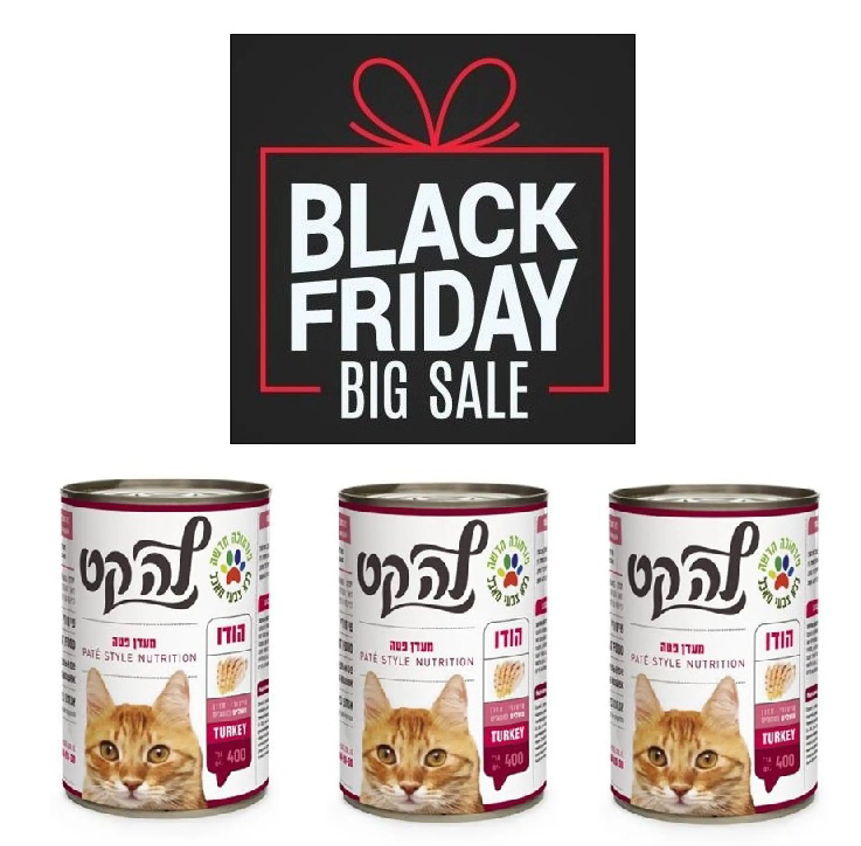 כל פחית במשקל 400ג', סך הכל בעסקה 1.2ק"ג מזון רטוב לחתולים.