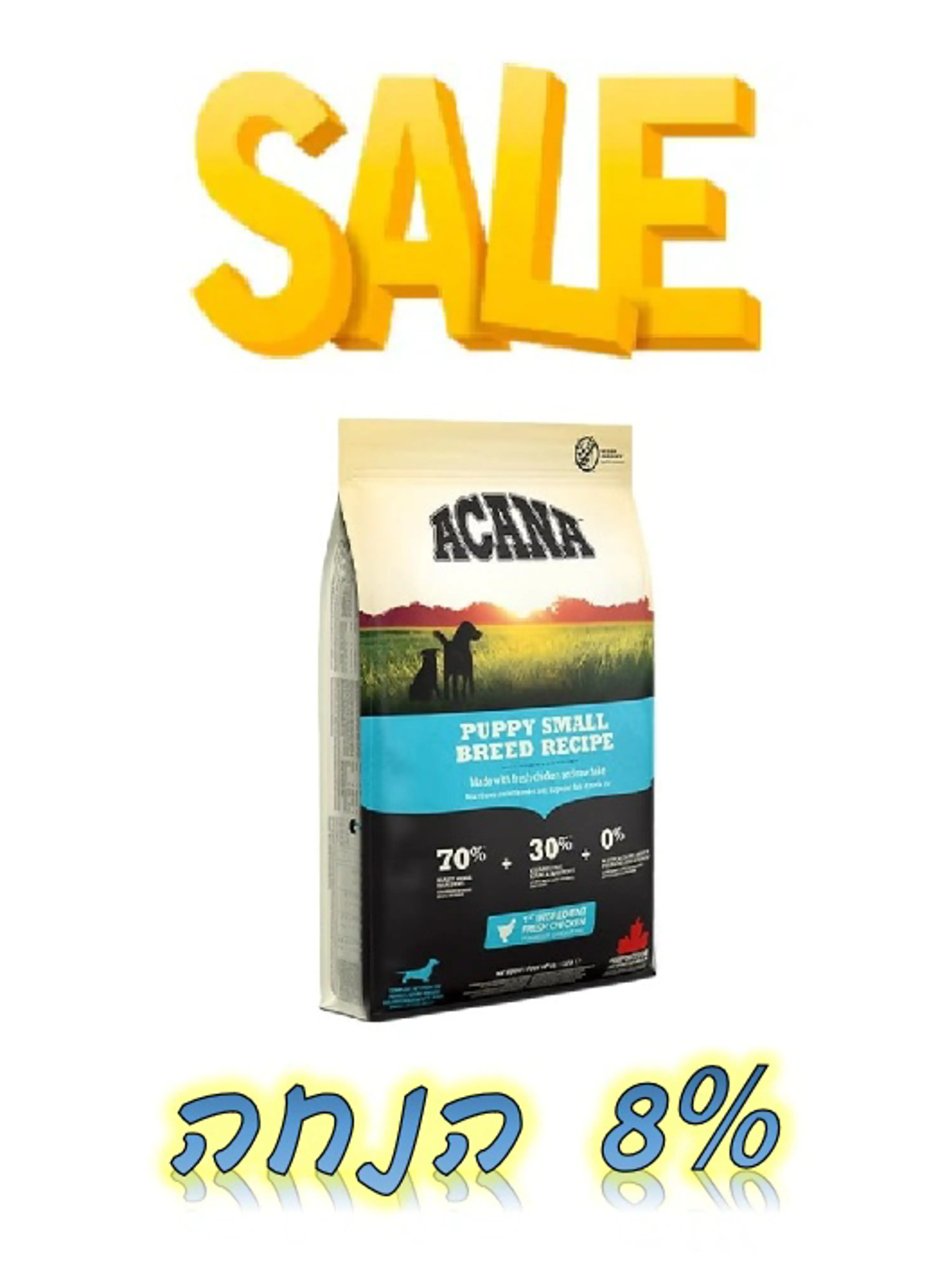 מבצע! אקאנה מזון לכלב גור גזע קטן - שק בודד ב-8% הנחה או 2 שקים ב-12% הנחה! SALE! Acana Puppy Small Breed