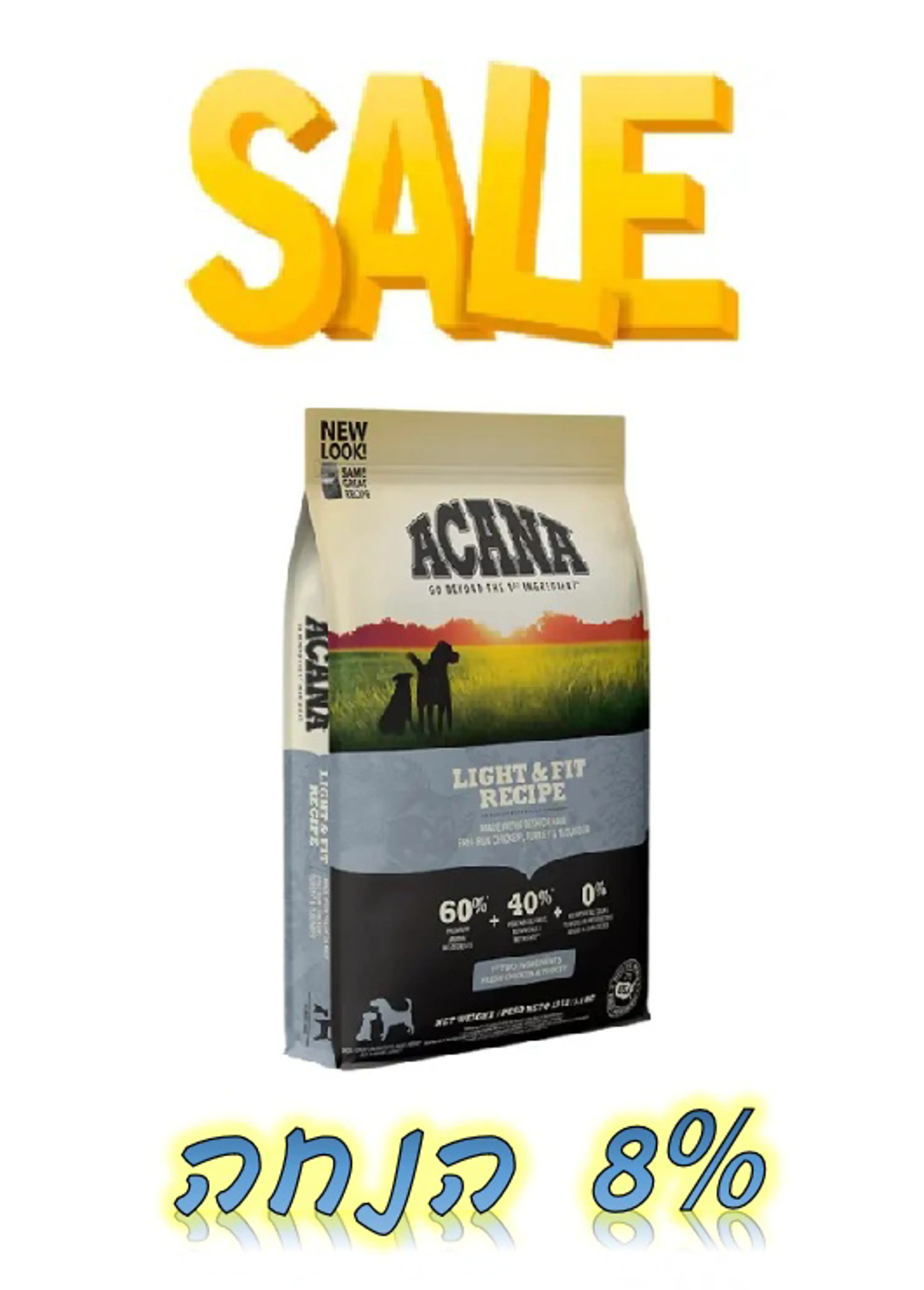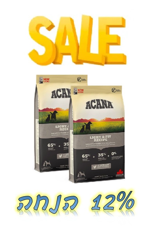 מבצע! אקאנה לייט מזון לכלב בוגר - שק בודד ב-8% הנחה או 2 שקים ב-12% הנחה! SALE! ACANA Light & Fit Dog food