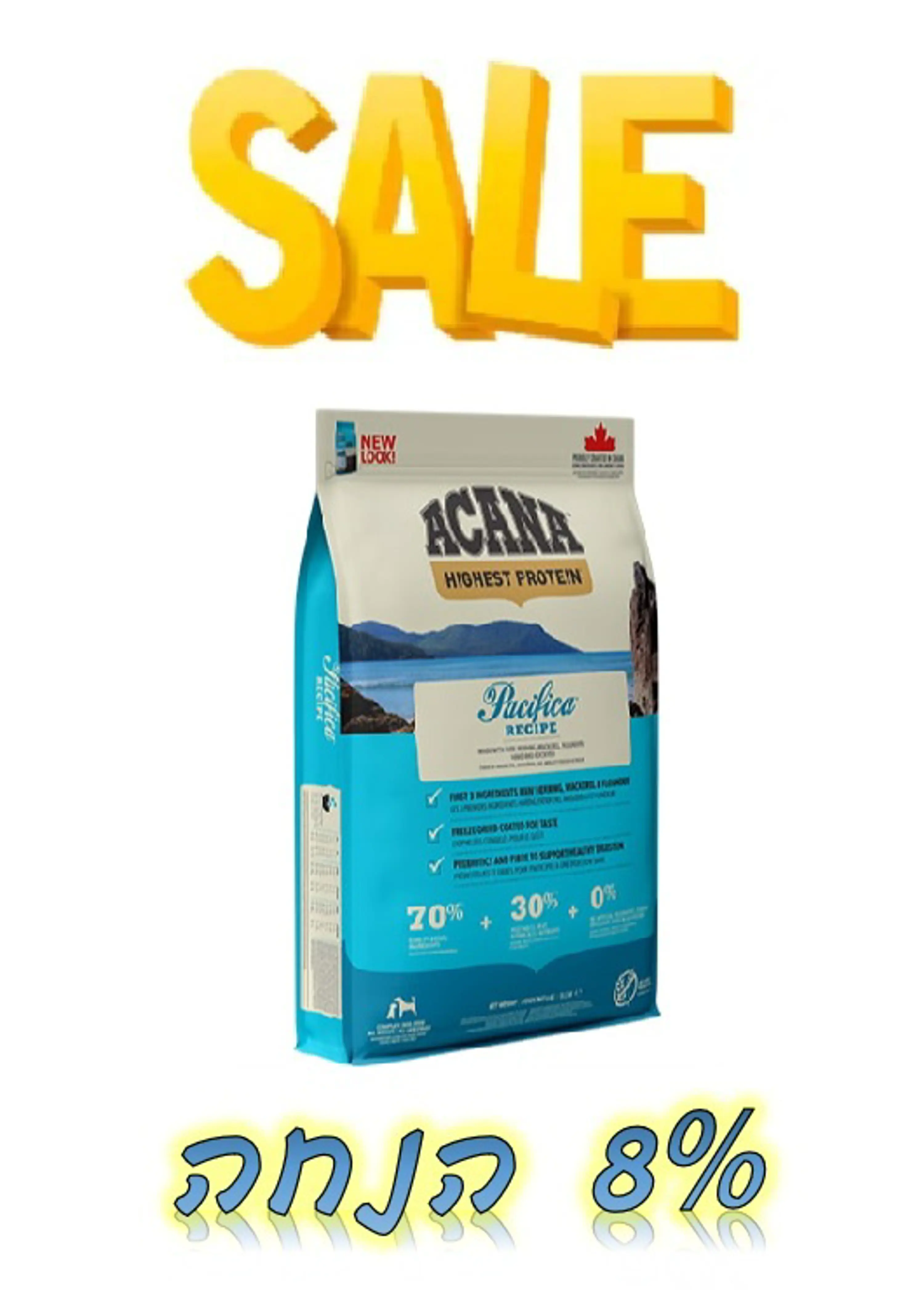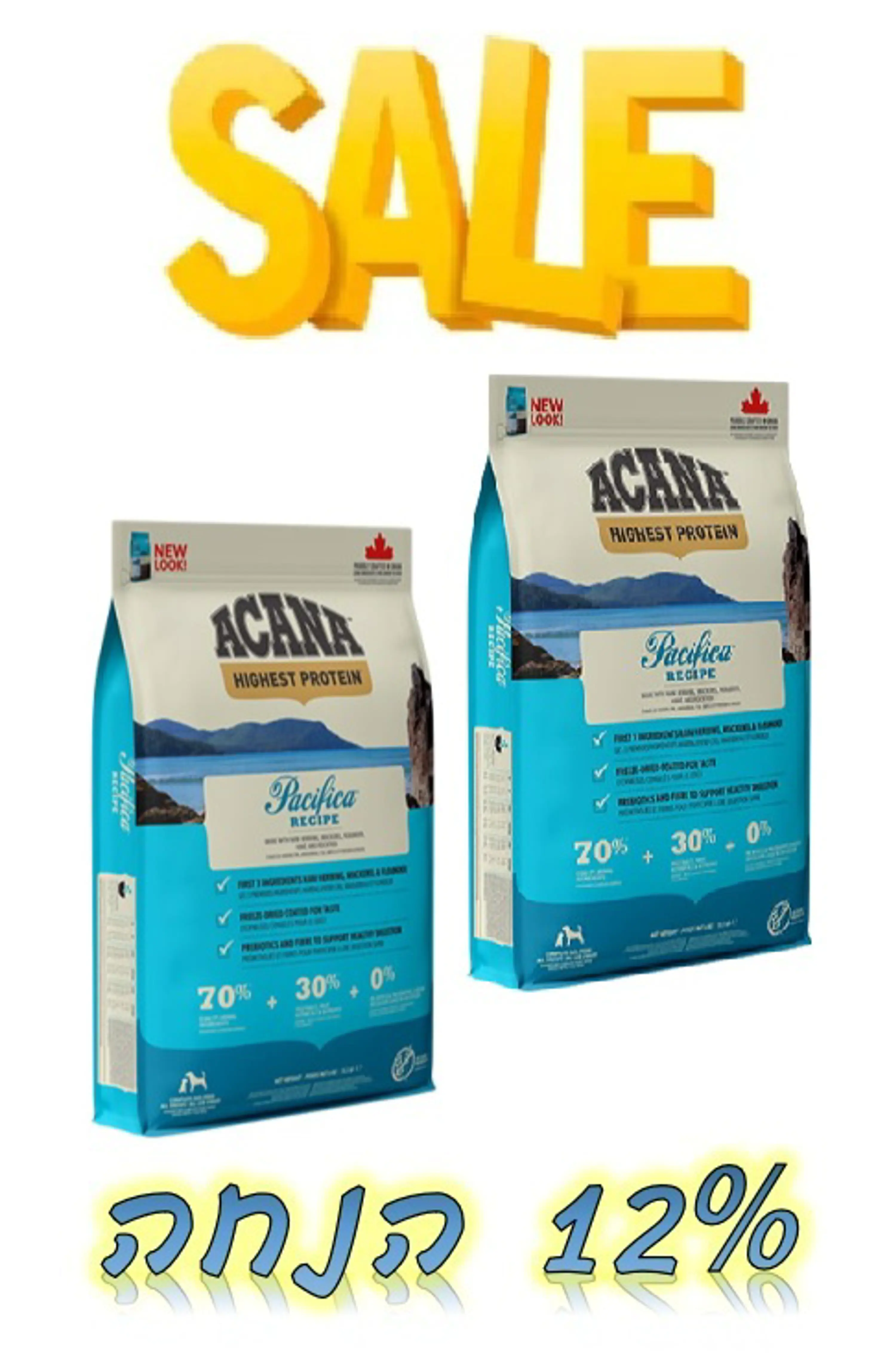מבצע! אקאנה מזון לכלב פסיפיקה - שק בודד ב-8% הנחה או 2 שקים ב-12% הנחה! SALE! Acana Pacifica