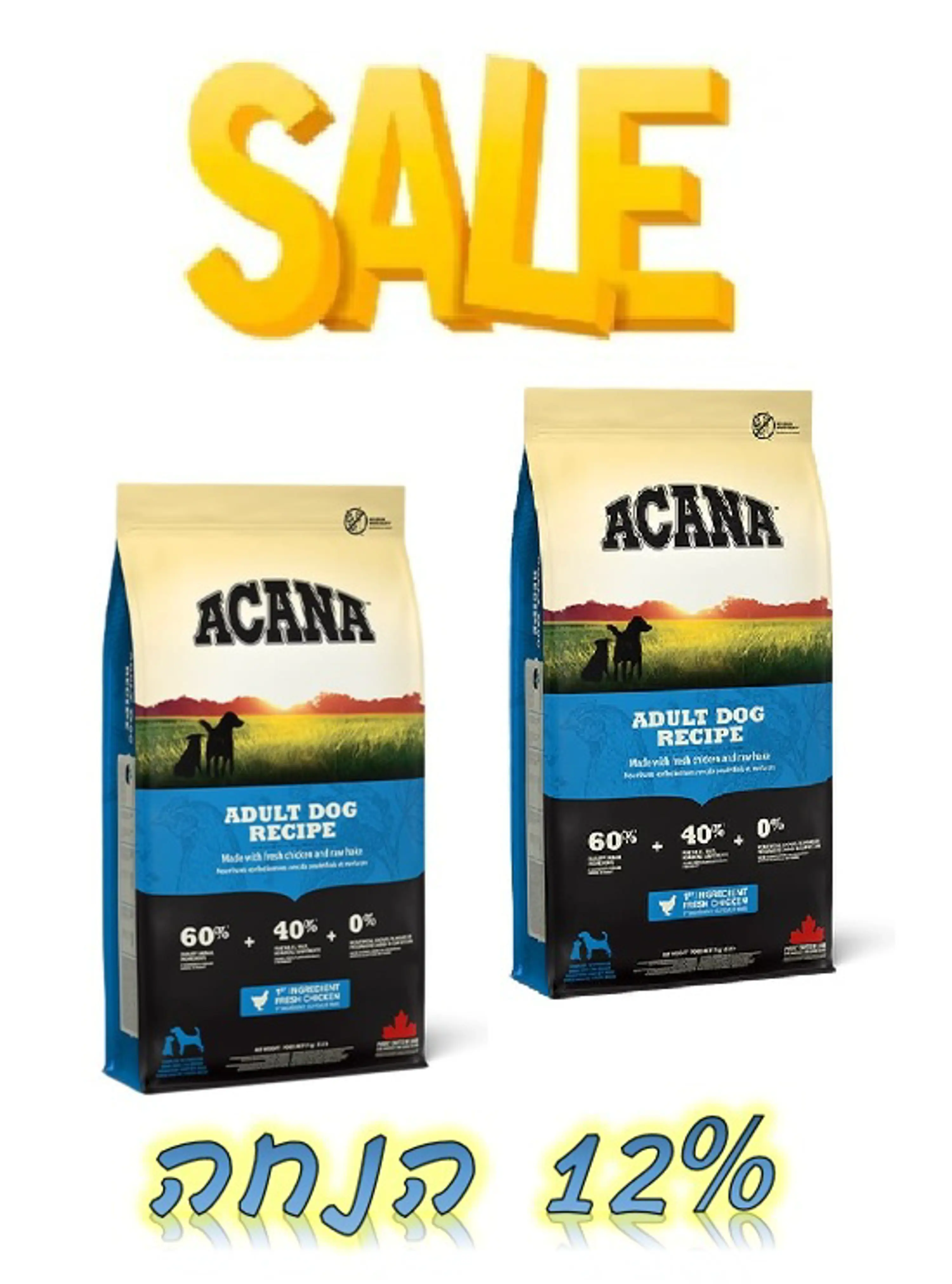 מבצע! אקאנה מזון לכלב בוגר עוף - שק בודד ב-8% הנחה או 2 שקים ב-12% הנחה! SALE! Acana Adult Dog Recipe